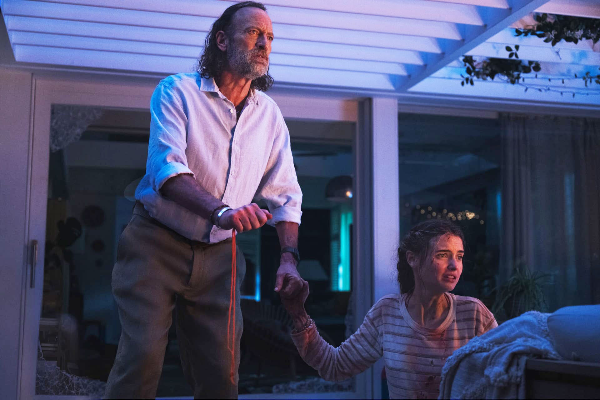 And yet the creature’s behavior often beggars belief. Apparently, one of the under-reported symptoms of rabies is becoming an organized, calculating spree killer akin to Ghostface. In fact, there’s a scene ripped right out of the original Scream. Hannah — at least, I think it’s Hannah, hard to tell them apart after everyone’s hair gets wet in the pool — escapes the house and attempts to call for help from a car parked in the driveway. But Ben has the keys and taunts her by unlocking the doors before entering through the back. In another movie, such diabolical ape villainy might be comical. And maybe that’s what director Johannes Roberts intends here. But the circumstances are pretty sad, and by now we've already watched multiple faces be ripped off. There's a mismatch between the grim tone and absurd scenarios. It's possible to laugh and scream at the same movie, of course — see Ready or Not, which I recently reviewed. But here there's not much of either. Just violence.